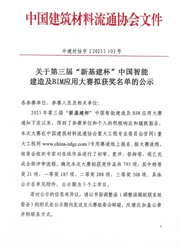 榮獲第三屆“新基建杯”中國智能建造及BIM應用大賽